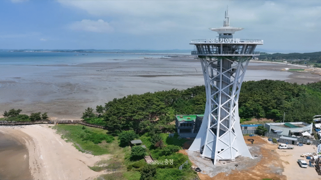 서부면 속동전망대에 가보신 적 있나요? 서부면 상황리, 승마체험장 옆 속동전망대는 야트막한 동산 위에 서해안 노을을 관람하도록 만든 배 갑판 모양의 전망대입니다. 올해부터 본격적으로 이 전망대 옆에서 대규모 공사가 진행되더니 높이 65m의 전망탑이 우뚝 솟구쳤습니다. 어떠신가요? 이질적으로 솟은 타워로 해안 경관이 망가진 것 같으신가요, 아니면 타워에 올라가 볼 서해의 노을이 기대되시나요?