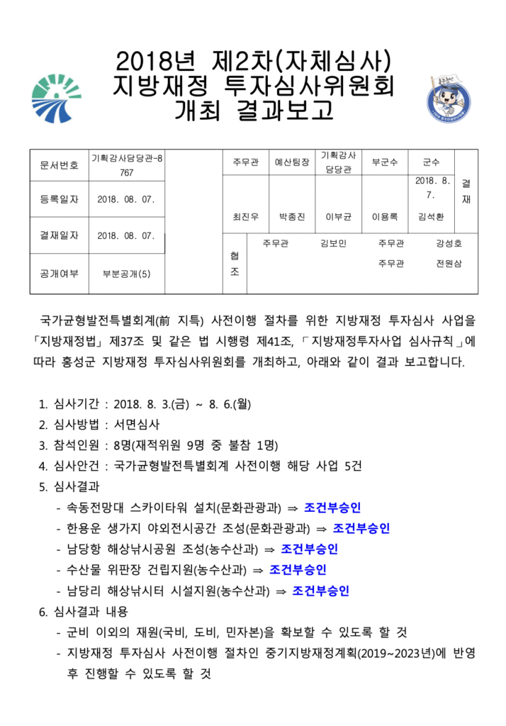 🙋♀️ 여기서 잠깐! 모든 사업에 대해 투자심사를 하는 것은 아니고, 일정 금액 이상인 경우 실시합니다. 또 금액과 재원의 출처(자체재원, 이전재원)에 따라 자체심사 또는 의뢰심사(도 또는 국가)를 진행합니다. 더 자세히 알고 싶다면 지방재정투자심사규칙을 인터넷에서 검색해보세요!
