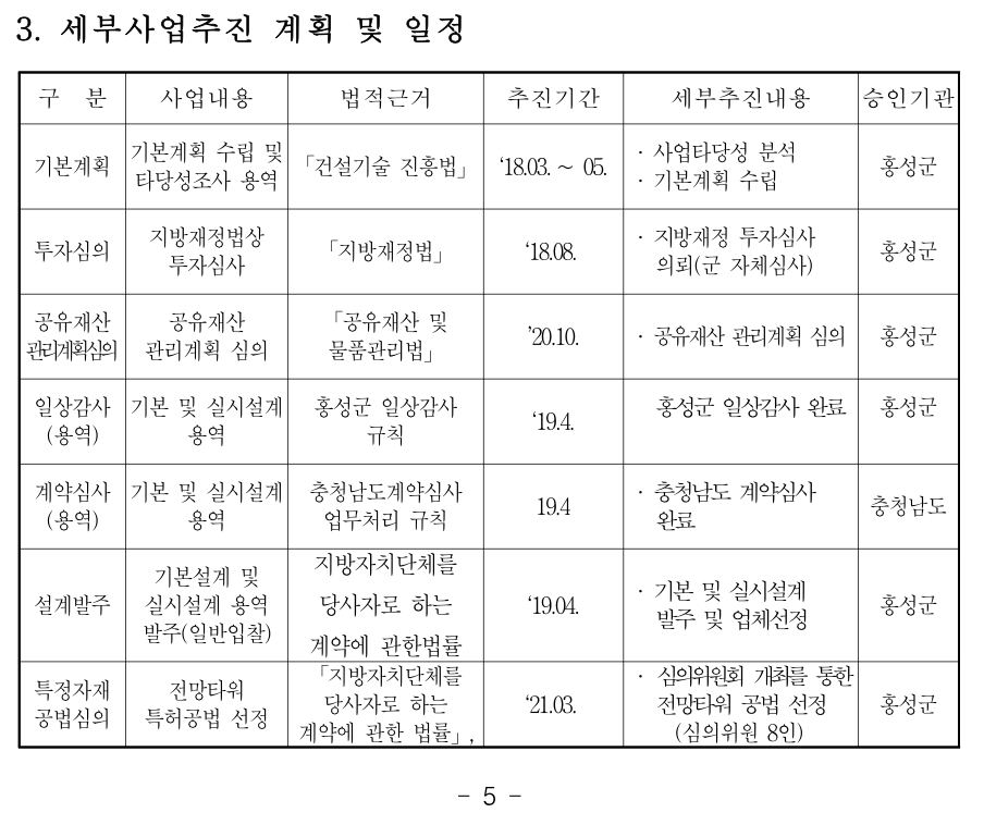 속동 스카이타워는 최초 사업비 53억원에서 실시설계 중 75억으로 사업비가 증가됩니다. 30% 이상 사업비가 증가하면 투자심사 재심사 대상이되고, 속동 스카이타워는 충남도의 재원이 투입되어 충남도 투자심사 대상 사업이 됩니다. 문제는 홍성군이 재심사를 받기도 전에 계약 발주 및 착공을 했다는 점입니다.