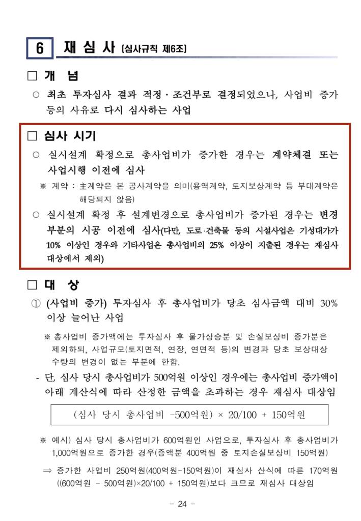 투자심사란 사업 시행 전에 사업의 필요성과 타당성 등을 심의하는 제도입니다. 타당성 조사란 말 그대로 투자심사 과정에서 경제성, 정책성 등을 사전에 따져보는 것입니다.